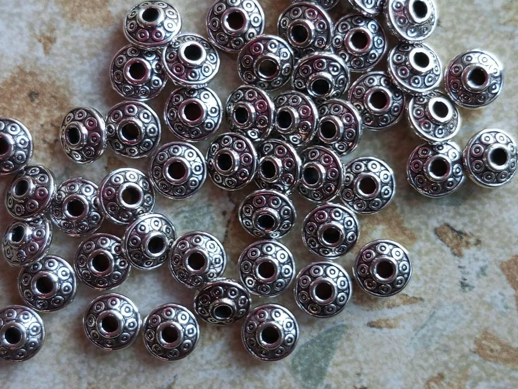 50 יחידות 6 מ"מ חרוזי מתכת טיבטיים עתיק זהב כסף סגלגל צורת עב"ם חרוזי מרווח רופפים לייצור תכשיטים קסמי צמיד עשה זאת בעצמך