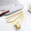 סט כלי אוכל ניידים זהב עיצוב ייחודי נסיעות לשימוש חוזר כלי שולחן כלי כסף לקמפינג סט כלי שולחן עם 215/12/6 קש ישר