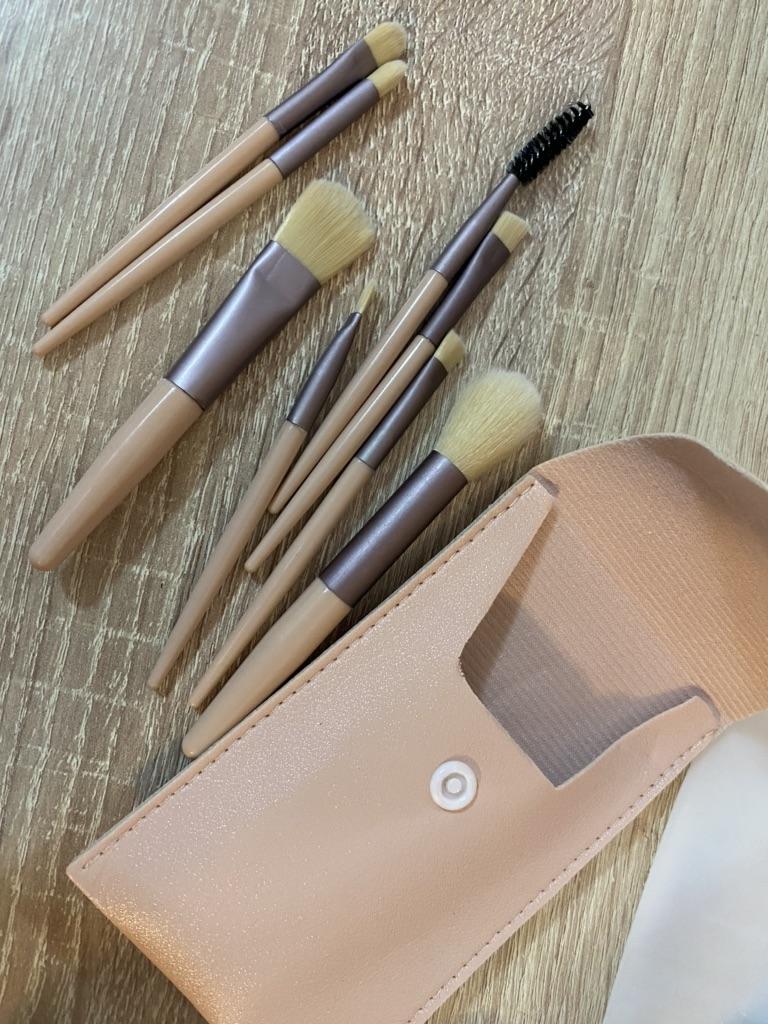 סט מברשות איפור רך נייד 8 חלקים Mini Voyage, סט מברשת איפור מברשת צלליות פודרה ריסים שפתי קונסילר סומק