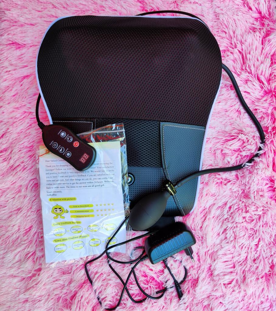 🛍️Massage pillow🛍️ Rating: ⭐⭐⭐⭐⭐ ✨This massage pillow is so special and it's very good! It has 20 massage balls of different sizes (10 on each side) and it massages the body in such a good, comfortable and relaxing way and I love it very much❣️ ✨You can massage the neck, lower back, upper back, shoulders, waist, legs, hands, calf, feet and more with the pillow... ✨The pillow has several modes and several levels, the massage balls can rotate both forward and backward, you can activate a vibration mode, you can activate a heating mode, it has an automatic shutdown after 15 minutes. • In addition, it has an airbag on the back side that can be inflated and deflated as needed. ✨The massage pillow can help promote blood circulation in the body and effectively relieve the whole body with the massage balls that help relax and relieve the muscles. ✨The massage pillow is easy to use and can be used at home, in the car, in the office and more... ✨In the package you get: massage pillow, cable, wormwood for hot compression, instruction sheet. ✨It is very high quality and well made, if you are looking for a massage pillow for yourself or for someone as a gift, this massage pillow is highly recommended. ✨The product comes protected inside a cardboard package📦 ✨The product arrived to me by fast delivery in about 31 days. ✨Many thanks to jinkairui massagers for sending me the product! It is highly recommended to buy this product🛍️❤️