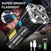5 LED Flashlight High Power Rechargeable Waterproof Led Long-range Spotlight Battery Display COB Light Outdoor Multi-function