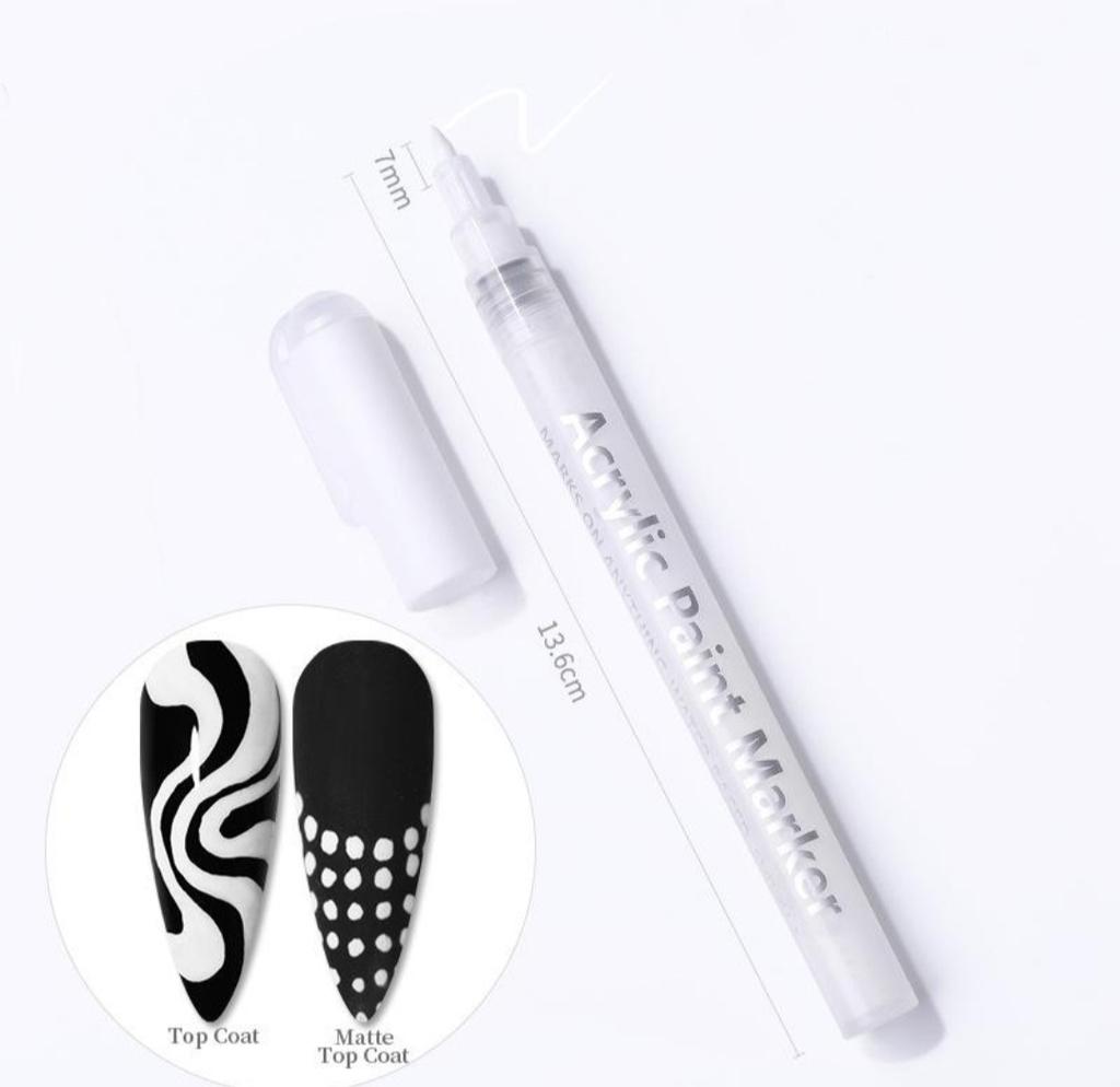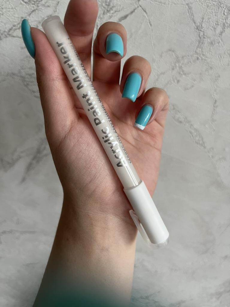 Acrylic marker💅 A marker pen for nail design is suitable for drawing the most subtle design elements, I took a white one, I will do a yrench😊. In order for the marker to work, you need to catch it on the rod. It is required to fix the finished design with a top coat.