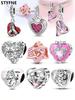 סדרה ורוד חדש תליון לב חרוזים מתאים אופנה מקורית 925 כסף סטרלינג צמיד קסם לנשים Diy תכשיטים בסדר