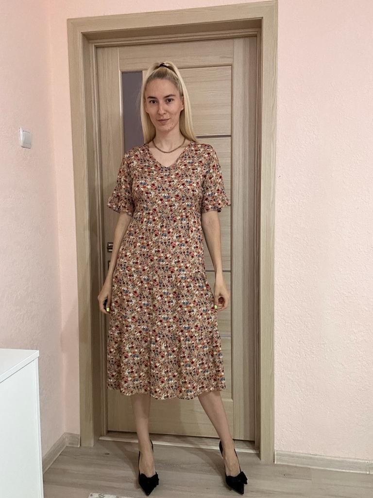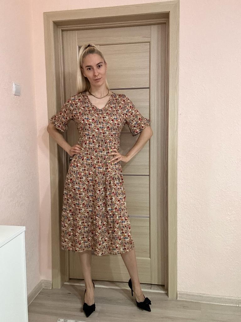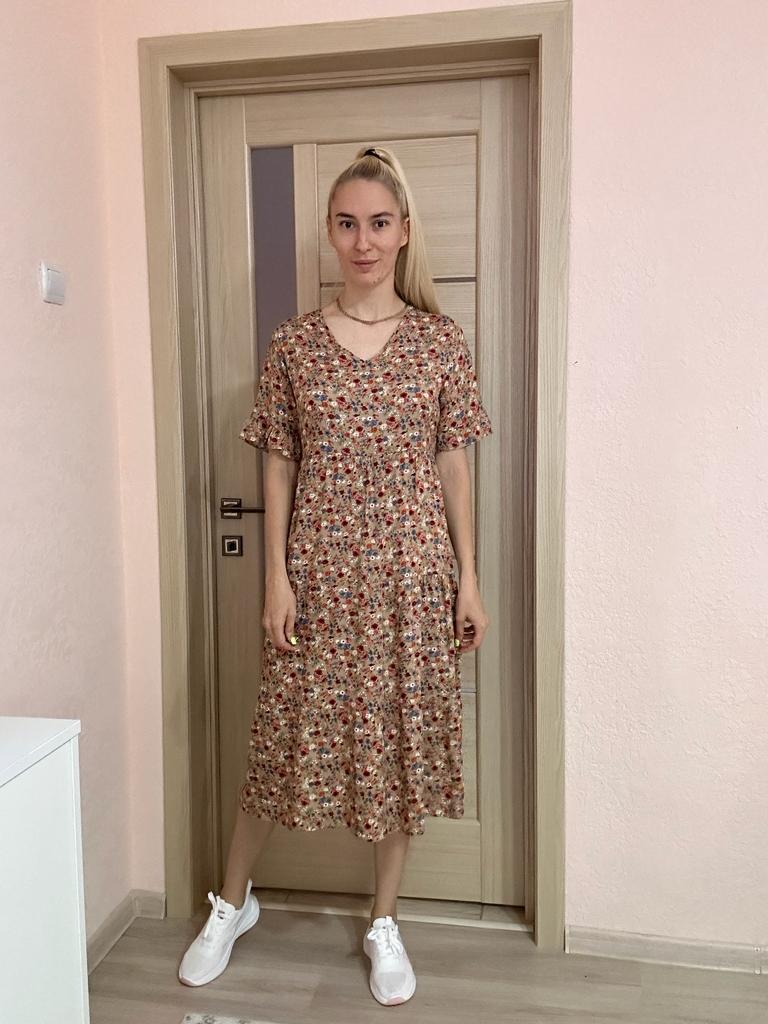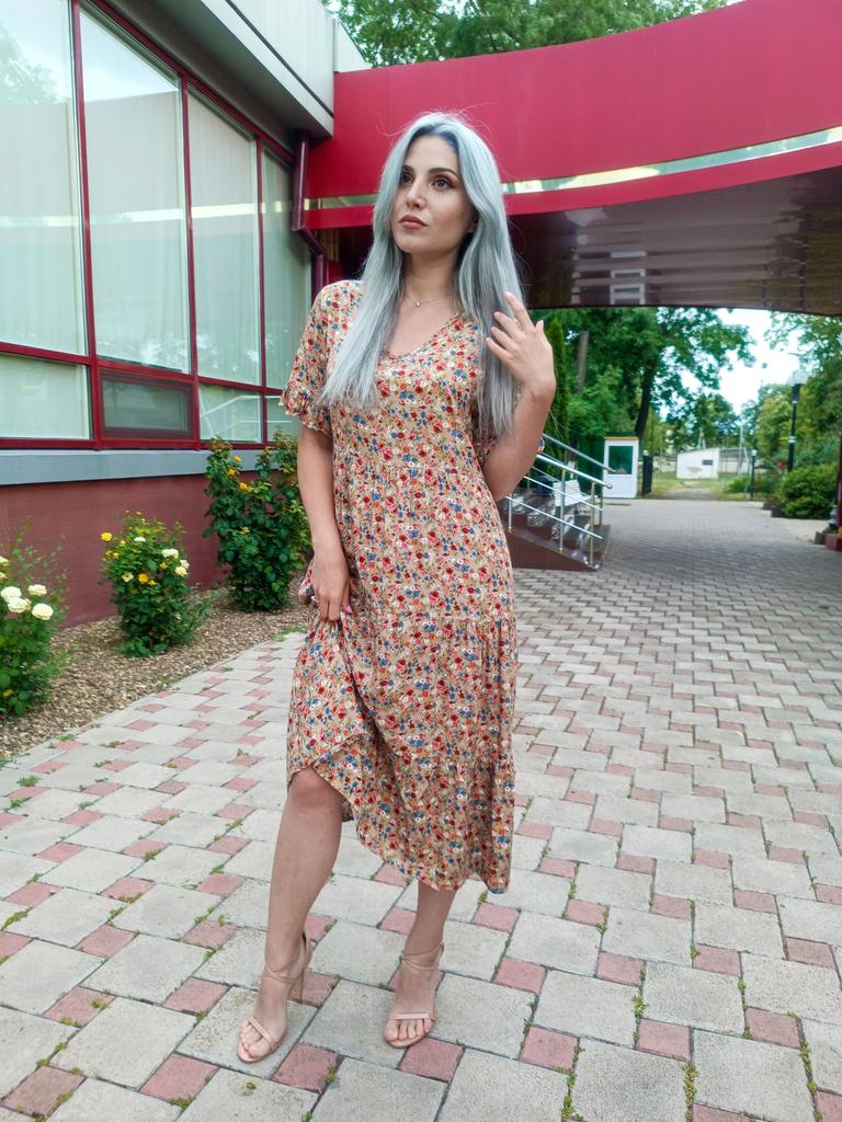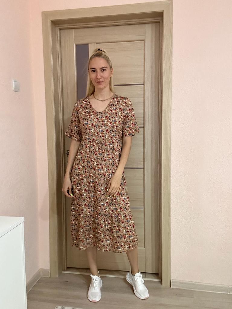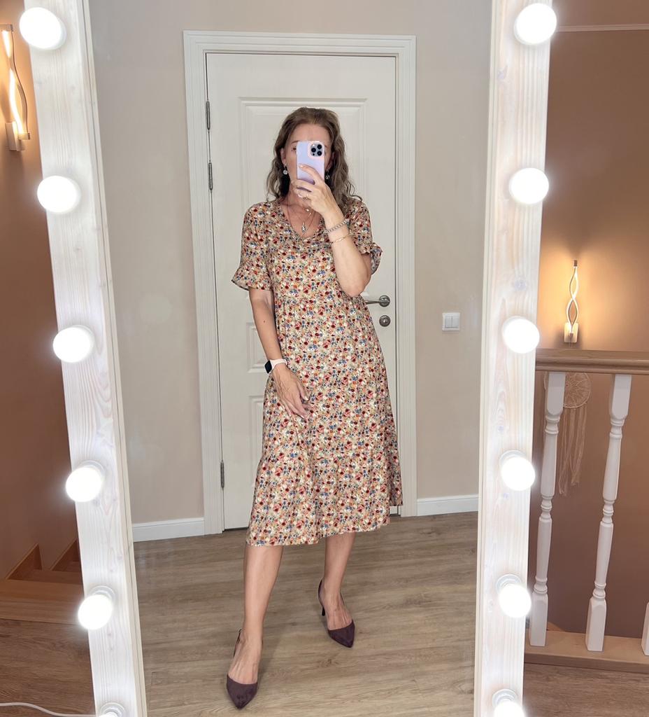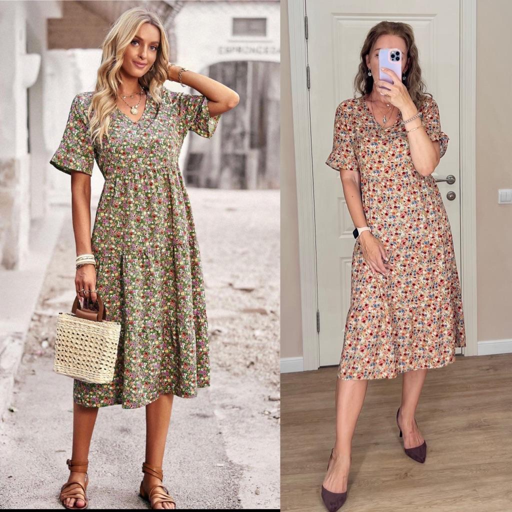 SHORT SLEEVE summer dress with a beautiful floral print 👗 🔆 🔆Delivery time 🔆: 9 days to Germany. Awesome!!👍👍🚀🚀🚀🚀🚀🚀🚀 🔆Scope of delivery 🔆: The scope of delivery includes a dress 👗 in the appropriate color and size. There are 3 colors (blue, green, apricot color) to choose from 👌👌🥳👗. It is available in sizes from S to XL. The dress 👗 fits me great! Normally I wear dress size 36 (s). I weigh 55kg over 167cm. I bought the dress in blue in size S and the color is exactly as shown. But the color is a bit different outside in the sun 🌞 and in the shade, like most of the time.👌 🔆Quality 🔆: The dress is casual and opaque, with a small neckline. The product is true to size 🔝🔝🔝🔝 The dress is about mid-calf on me. Very light, soft fabric👍✅️! About the material composition: 35% cotton and 65% polyester, but it feels very comfortable on the skin. Perfect for summer!!😉😉😘🔝👍 🔆 The dress 👗 will be perfect for vacation. 👍👌👌👍 Thank you Joom and seller Hi Dawn!😘5 stars! 🌟 I would be happy to recommend the dress!👍