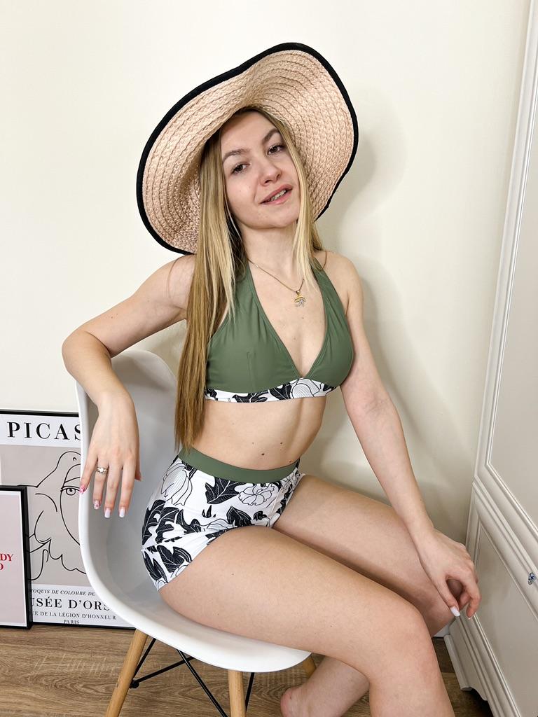 בגד ים לנשים צוואר V עמוק מפוצל גבוה מותן שטוח זווית שטוחה הדפסת שרוכים בגדי ים בצבע אחיד