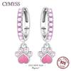 WOSTU עגילי חישוק מכסף סטרלינג 925 זהב שחור ורוד טופר חתול מחמד לנשים עגילי קליפס תלויים חמודים בצורת חיה מתנה תכשיטי יום הולדת