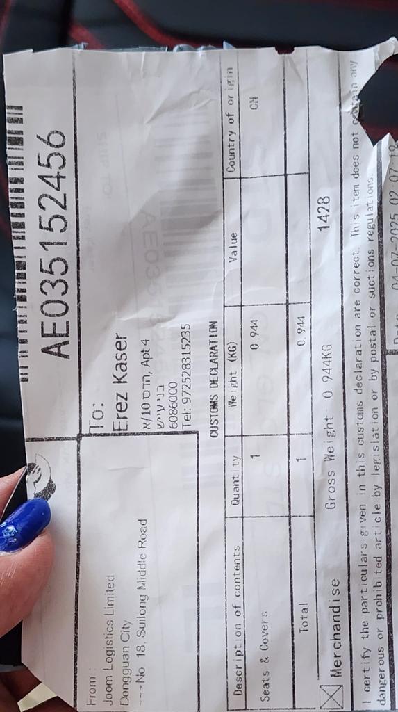 הוזמן שני כיסוים לכיסאות רכב קידמי הגיע רק אחד אבקש לקבל את השני, תטדה