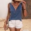 Tank Top Shirt Fashion Women Summer Vest Casual Zipper Tops Sexy V-neck Solid Sleeveless Camis Blouse Clothes Blusas 25790
