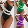 בגד ים לנשים Colorblock כתף אחת סקסית ללא גב מותן גבוה ביקיני סט בגדי ים בגדי ים