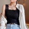 גופיית תחרה מתוקה לנשים, קטע דק לאביב ולקיץ עם גופיית ספגטי לבנה ללא שרוולים