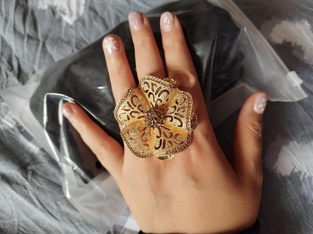 Oversize גיאומטריים חלולים טבעות פרחים לנשים מתכוונן טבעת גדולה אביזרי חתונה תכשיטי טבעות