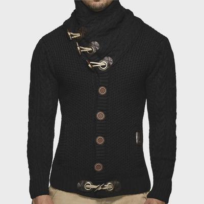 קרדיגן סריג סלים לגברים עם צווארון גבוה בסגנון אירופאי, עם כפתורי קרן וצווארון צעיף לסתיו ולחורף