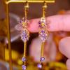 מחט כסף S925 עגילי טיפה פרח קריסטל סגול כחול 2022 עיצוב טרנדי עגילי זירקון יוקרתיים מבריקים לנשים