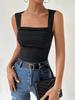 טופ וסט קיץ נשים קז'ואל צבע אחיד צווארון מרובע