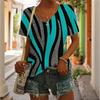 חולצת טריקו פסים לנשים בגדים פשוטים חדשים מזדמנים עם צווארון V חולצת טי שרוול קצר Harajuku מודפס רטרו חולצה לנשים קיץ