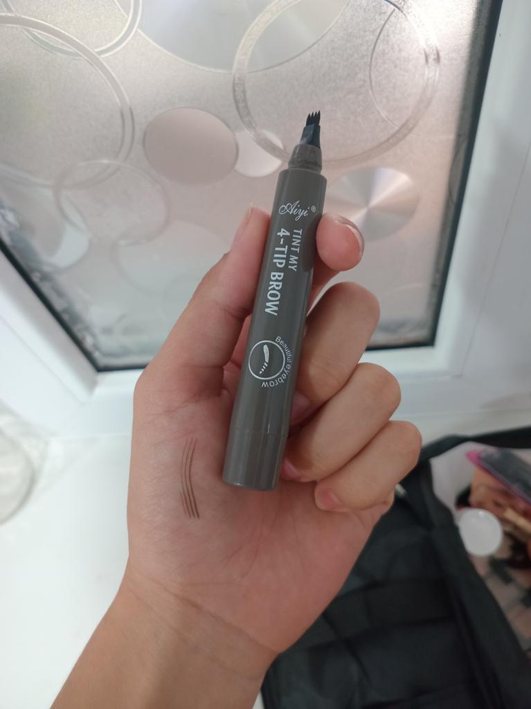 עיפרון גבות נוזלי 4 נקודות עמיד למים עם מברשת גבות תלת מימדית לאורך זמן - כלי איפור טבעיים מיקרובלייד