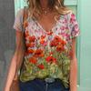 אופנת 2022 חולצת קיץ חדשה לנשים עם פרח חתול צווארון V שרוולים קצרים חולצת טי מודפסת בתלת ממד טופ מידה בגדי רחוב יומיומיים רפויים
