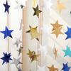 גרלנד כוכבים עגולה 4 מטר זהב כסף שחור עם נייר מראה מנצנץ מחרוזת לקישוטים תלויים למסיבת סיום, חתונה, אספקת קישוט