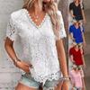 חולצת טריקו לנשים מסוגננת ורב-תכליתית עם צווארון V ותחרה, מושלמת למסיבות, לקניות, לנסיעות וללבוש יומיומי.