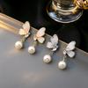 Gradient Blue Crystal Butterfly Pearl Pendant Earrings