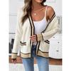 סוודר קרדיגן ז'קט סתיו וחורף יומיומי פסים בצבע מנוגד כיס שרוול ארוך