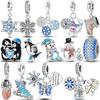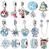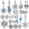 כסף מצופה 925 פתית שלג חורפי תלתן ארבעה עלים חרוזי מרווח תליונים מתאימים לצמידים מקוריים עשה זאת בעצמך תכשיטי חג המולד עשה זאת בעצמך