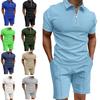 חליפת פולו לגברים חליפה קז'ואלית עם שרוולים קצרים חולצת טריקו עם דש ומכנסיים קצרים עם טקסטורה סט שני חלקים אתלטי
