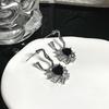 עגילי אהבה חלולים מאבן שחורה מסיכת כסף S925 עגילי סגסוגת זירקון