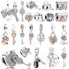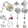 כסף סטרלינג 925 חוליית שרשרת תחרה מנעול לב מפתח תליון חרוז מתאים לצמיד מקורי תכשיטי עשה זאת בעצמך לנשים