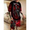 סט קיץ לגברים 2 חלקים עם הדפס דוגמת שלד מגניב, חולצת טי שרט שרוול קצר צווארון עגול לגברים ומכנסיים קצרים מותן אלסטי עם כיסים
