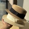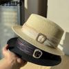 כובע שמש קש צרפתי וינטג' - שוליים שטוחים מסוגננים עם קסם נצחי - שמשייה אולטימטיבית לחופשות פנאי והרפתקאות בחוץ