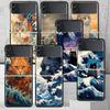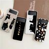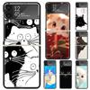 Cartoon Cute Cat Fish Aesthetic For Samsung Galaxy Z Flip 5 4 3 5G Phone Case Black Hard Cover ZFlip 5 4 3 Luxury Shockproof Bum