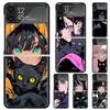Cute Anime Ins Girls Animal Cat For Samsung Galaxy Z Flip 5 4 3 5G Phone Case Black Hard Cover ZFlip 5 4 3 Luxury Shockproof Bum