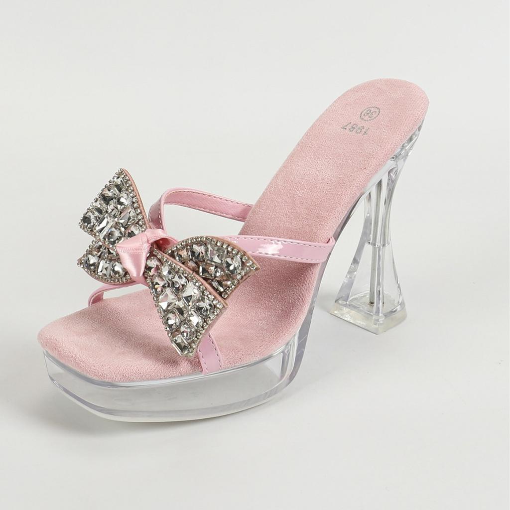 Women's Platform Sandals Sexy Car Model Transparent Nightclub Thick Heel Crystal Square Head Non-slip Flower 12CM LFD-1987-52