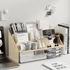 מחזיק עטים שולחני בקיבולת גדולה עם מגירה ומדף ספרים. קופסת אחסון לעפרונות מארגן שולחני כלי כתיבה לבית ספר למשרד