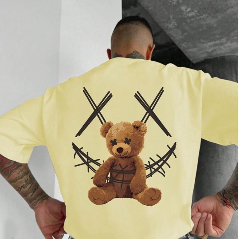 New Summer Men's Fashion T-shirt Cartoon Bear Smiling Face Printed Men's T-shirt Top