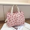 הדפס תות קורדרוי Zip Tote Shopper תיק כתף נסיעות