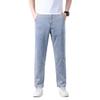 קיץ גברים ג'ינס דק Baggy Lyocell רך לנשימה מכנסיים ישרים אלסטיים מותן קז'ואל כחול אפור מכנסיים רחבים