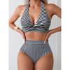 Women's Swimsuit Solid Color Pit Stripe Sexy Backless High Waist Bikini Suit Beachwear Bathing Suits