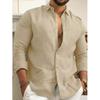 כותנה פשתן לגברים חולצות מזדמנות קלות משקל שקריות נושמות אביב סתיו חולצת שרוולים ארוכים ספורט חולצות דש הוואי גברים