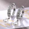 עגילי גולדפילד תלויים עם פנינה ועלה, עגילי גדילים זירקוניה לבנות, עגילים חמודים ומתוקים לאישה
