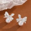 Simple Fashion Zircon Silver-plated Earrings, Simple Temperament Pearl Stud Earrings, Women's Style