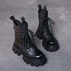 9cm Genuine Leather Women Boots Motorcycle Ankle Mid Calf Boots Platform Thick Heels Booties Autumn Winter Females Shoes Black