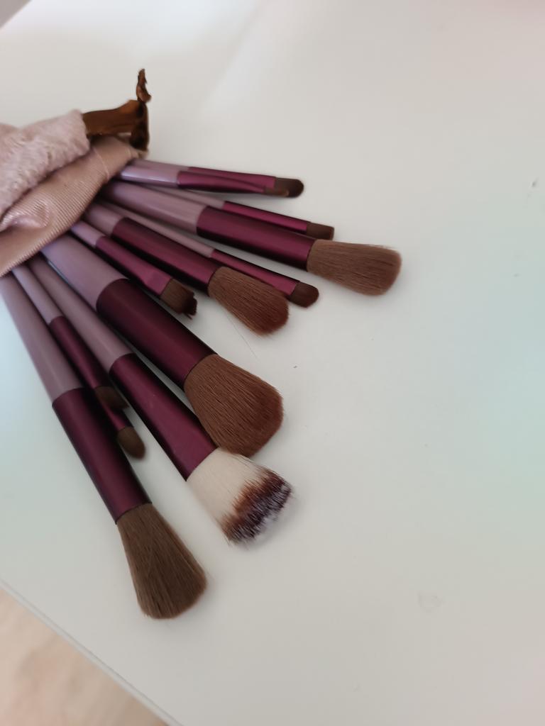 סט מברשות איפור מקצועי 13 יחידות זיפי ניילון לכל סוגי העור - כולל מברשות כף היד ושקית אחסון