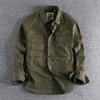 Solid color long-sleeved shirt men's work jacket spring and autumn trendy loose casual shirt men's autumn casual jacket