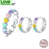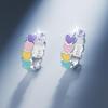 Genuine 925 Sterling Silver Earrings For Women Korean Rainbow Heart Enamel Heart Hoop Earrings Wedding Jewelry Accessories