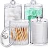 4 Pack Cotton Swab Holder Dispenser for Cotton Balls, Cotton Swabs, Cotton Discs, Floss Sticks-Small Clear Plastic Dresser Cosmetic Organizer
