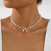 סימולציה פרל קשת קולר לנשים Bowknot שרשרת עגילים אביזרי תכשיטי חתונה