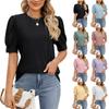 חולצת טי שירט שרוול קצר לנשים צווארון עגול צבע אחיד כפתורים חולצת פולאובר טופ יומיומי גופיה תחתונה