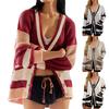 סוודר סרוג לנשים סתיו וחורף עם צווארון V, מידה גדולה, כיסים, חוסם צבע